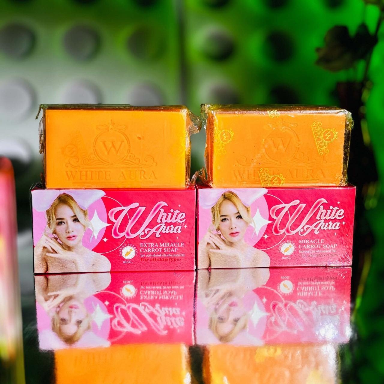 White Aura Miracle Carrot Soap প্রাকৃতিক গাজরের নির্যাসে সমৃদ্ধ, যা ত্বককে করে উজ্জ্বল, মসৃণ এবং তারুণ্যময়। সব ধরনের ত্বকের জন্য উপযোগী।
